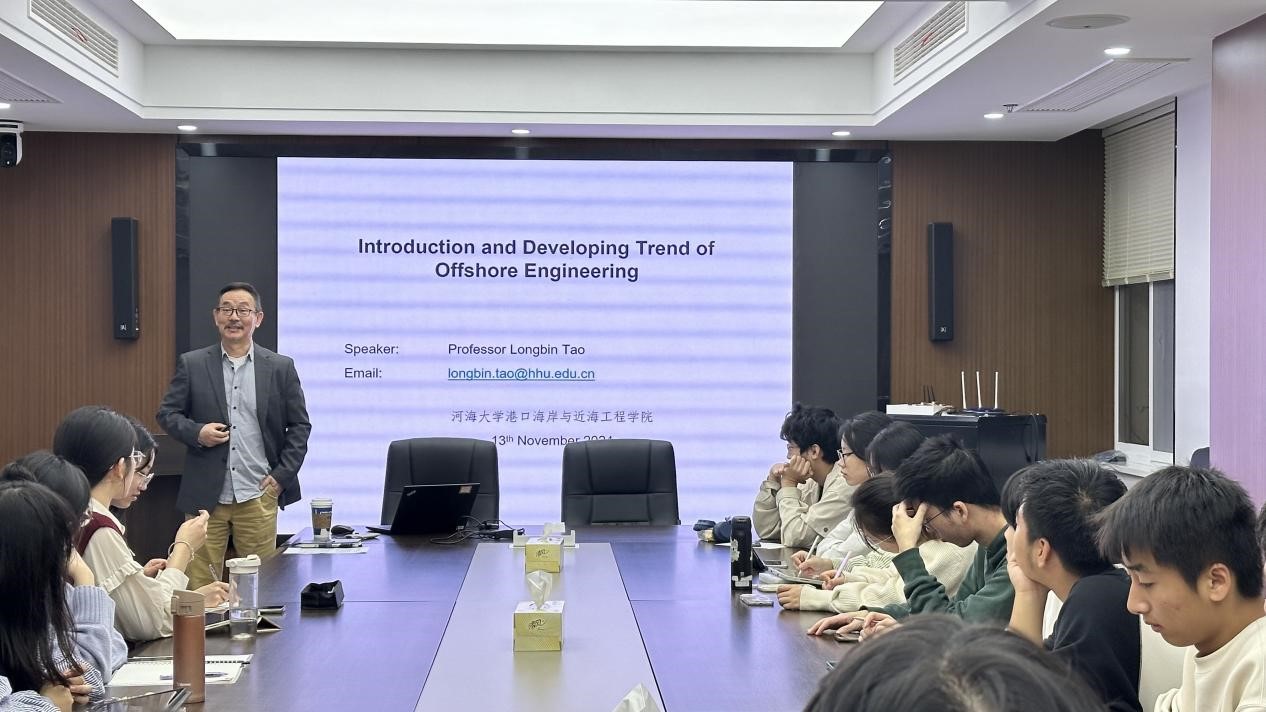 在互动交流环节,陶教授耐心倾听并解答了学生提出的包括神经网络在海洋工程平台应用、智能运维系统在内的诸多问题,拓宽了学生的国际视野,也为后续学习注入了新的动力。