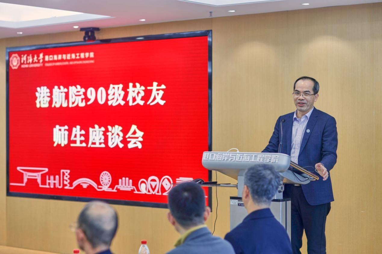 郑金海校长对1990级校友返校表示热烈的欢迎,对水港专业的校友们在国家“一带一路”倡议的推进过程中、在助力国家水网建设的伟大事业里发挥的重要作用给予了高度评价。他向校友们介绍了学校发展现状和未来规划,并表示2025年学校将迎来110周年校庆,期盼各位校友能够一如既往地关心、帮助和支持学校的建设与发展,共同书写学校更加灿烂的篇章。
