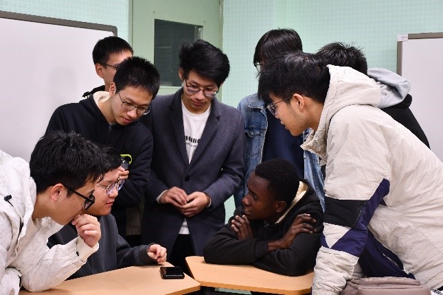 自由交流研讨环节,中加学生分为4组,相互分享包含课程、生活、文化以及对专业未来的展望等。交流结束后,成欣星、郑景元、尹幸阳、Richmond等中非同学分享了活动感受。