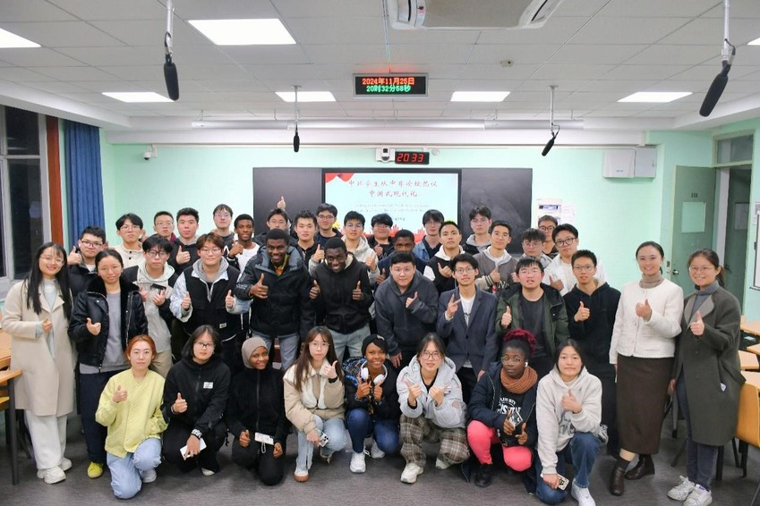 11月25日晚,学院22级港航4班全体同学与8位22级加纳班留学生联合开展主题为“中非学生从中非论坛热议中国式现代化”的交流活动。高清av 党委副书记王玲出席并讲授主题思政课,相关班级班导师、辅导员参加活动。