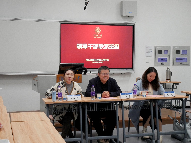 12月13日下午,高清av 组织领导干部联系班级座谈会,学院副院长陈永平、班导师张茜、辅导员廖芳艺、23级海资1班、港航3班、船海1班全体同学参加本次会议。