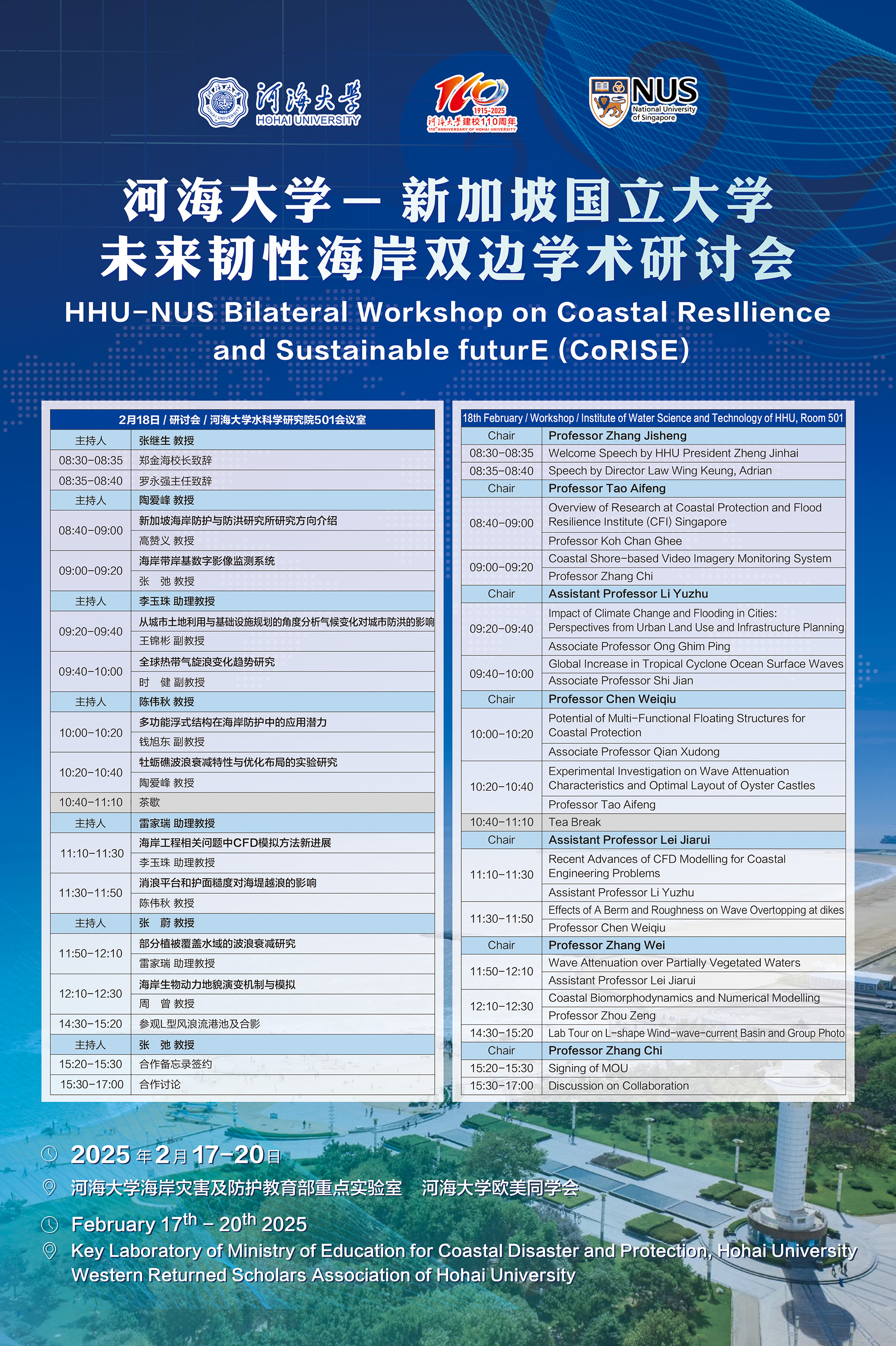 学术会议:高清av -新加坡国立大学未来韧性海岸双边学术研讨会 HHU-NUS Bilateral Workshop on Coastal Resilience and Sustainable futurE (CoRISE)