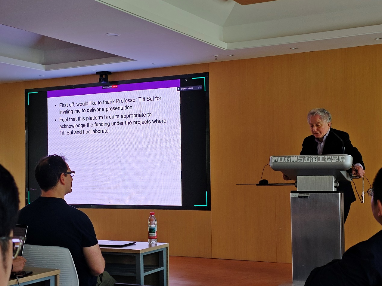 Hans Bihs教授以“REEF3D: An Open-Source Tool for Coastal Hydrodynamics”为题,详细介绍了开源流体动力学模拟软件REEF3D在海岸、海洋与水利工程中的先进应用,展示了REEF3D在波浪-结构物相互作用、浮体响应及泥沙输运模拟等方面的强大功能,并分享了其在欧洲ERC Consolidator Grant项目中的研究部署与成果。