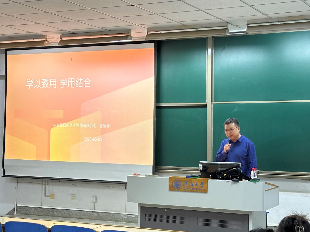 6月6日晚7时,高清av “卓越领航讲坛”第6期在江宁校区致用楼101教室举办。学院邀请到中交四航局人力资源部副总经理林斐和90级港航专业校友、中交四航局企业技术中心副总经理童新春共同担任主讲嘉宾,围绕就业形势、职业发展及终身学习等话题展开指导,学院 2022级本科生全体参加。