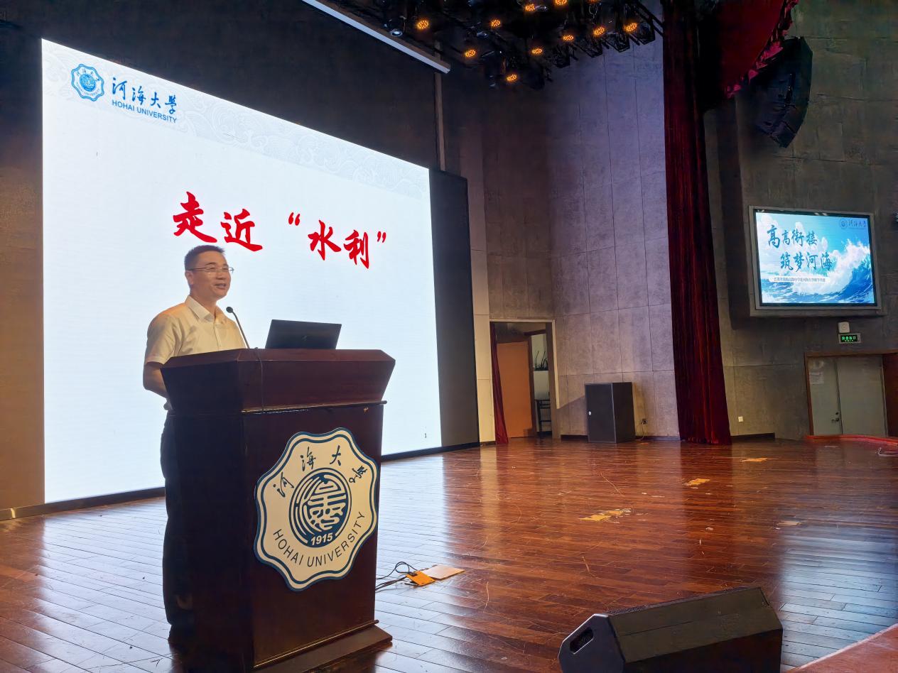 龚政院长为研学团讲授了题为《走近“水利”》的讲座。龚院长以连云港地区的地理环境入手,为同学们深入浅出地讲解了我国的地理特点和发展需要,梳理了我国的流域特点及调配工程,分析了水电开发现状及未来发展趋势,讲解了三峡大坝等著名水利枢纽的内部结构、价值意义,阐述了航运在“一带一路”倡议背景下的优势特点、船舶行业发展趋势、长江口深水航道整治工程的经济民生效益、我国港口建设情况,通过视频与图文具体介绍了洋山深水港、港珠澳大桥、深中通道等国之重器,带领同学们生动感受到水利工程的魅力和高清av 的办学内涵与学科优势。