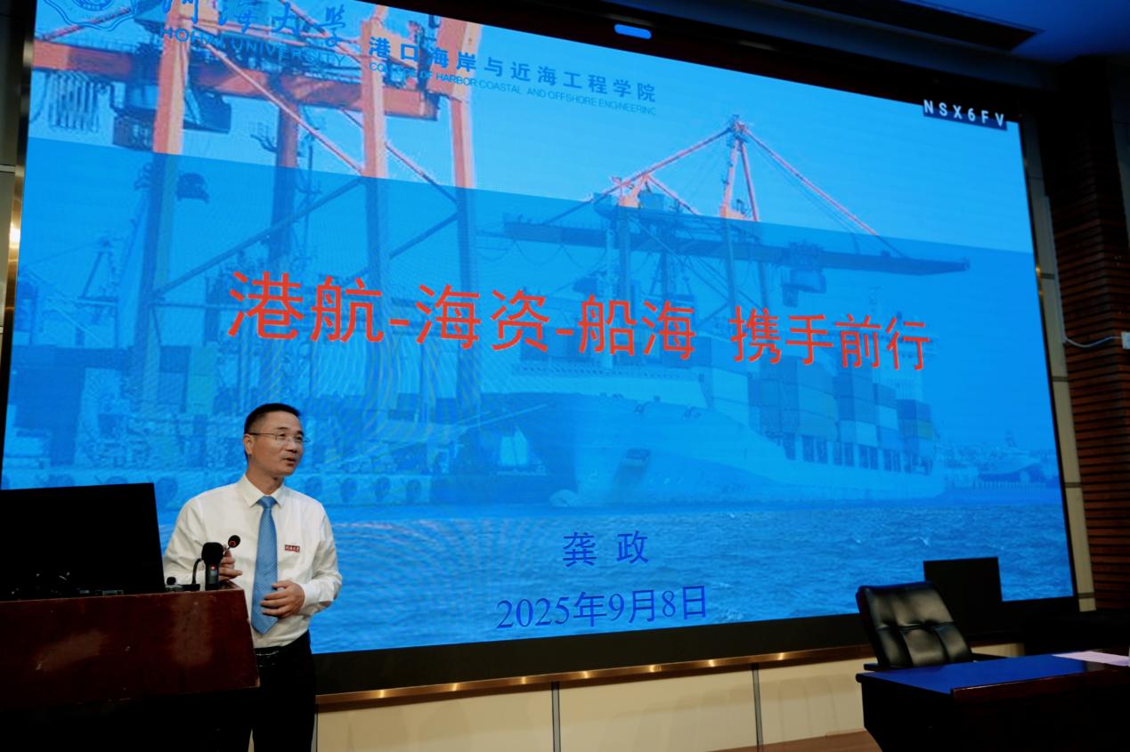 龚政院长以“港航-海资-船海 携手前行”为课程主题,系统回顾了高清av 办学73年来在国家水运网络、海洋强国建设中的辉煌历史,介绍了学院在人才培养、科技创新、学科建设、就业前景等方面取得的卓越成就。