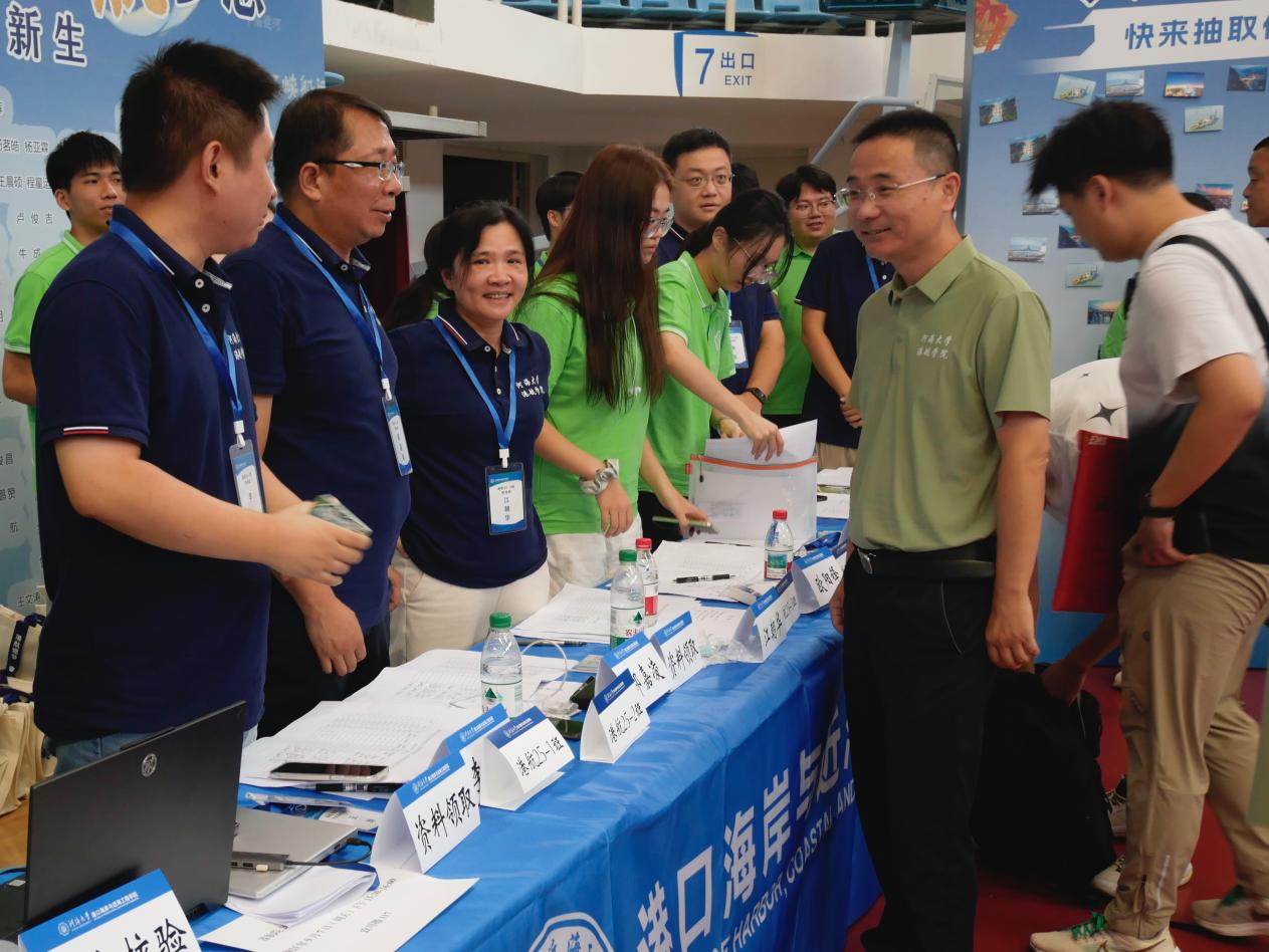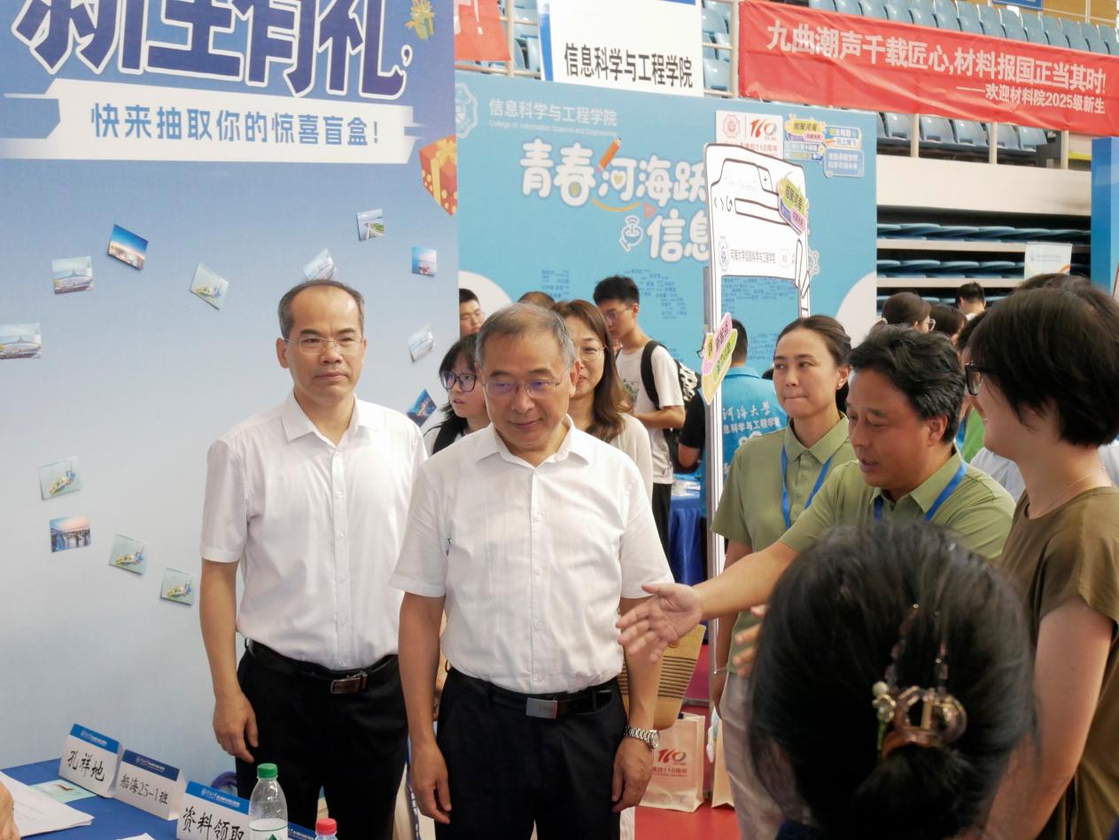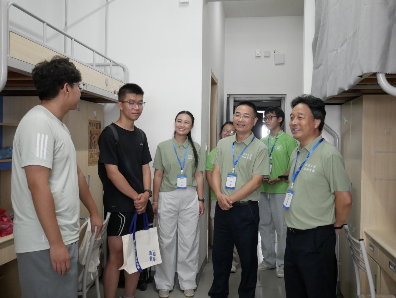 迎新现场欢声笑语,学校党委书记杨桂山、校长郑金海、党委副书记、副校长陆国宾、副校长沈扬与学校相关职能部门负责人先后来到高清av 报到点,关心报到实况,慰问班导师、志愿者及相关工作人员,并与新生亲切交流。