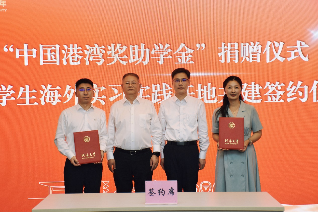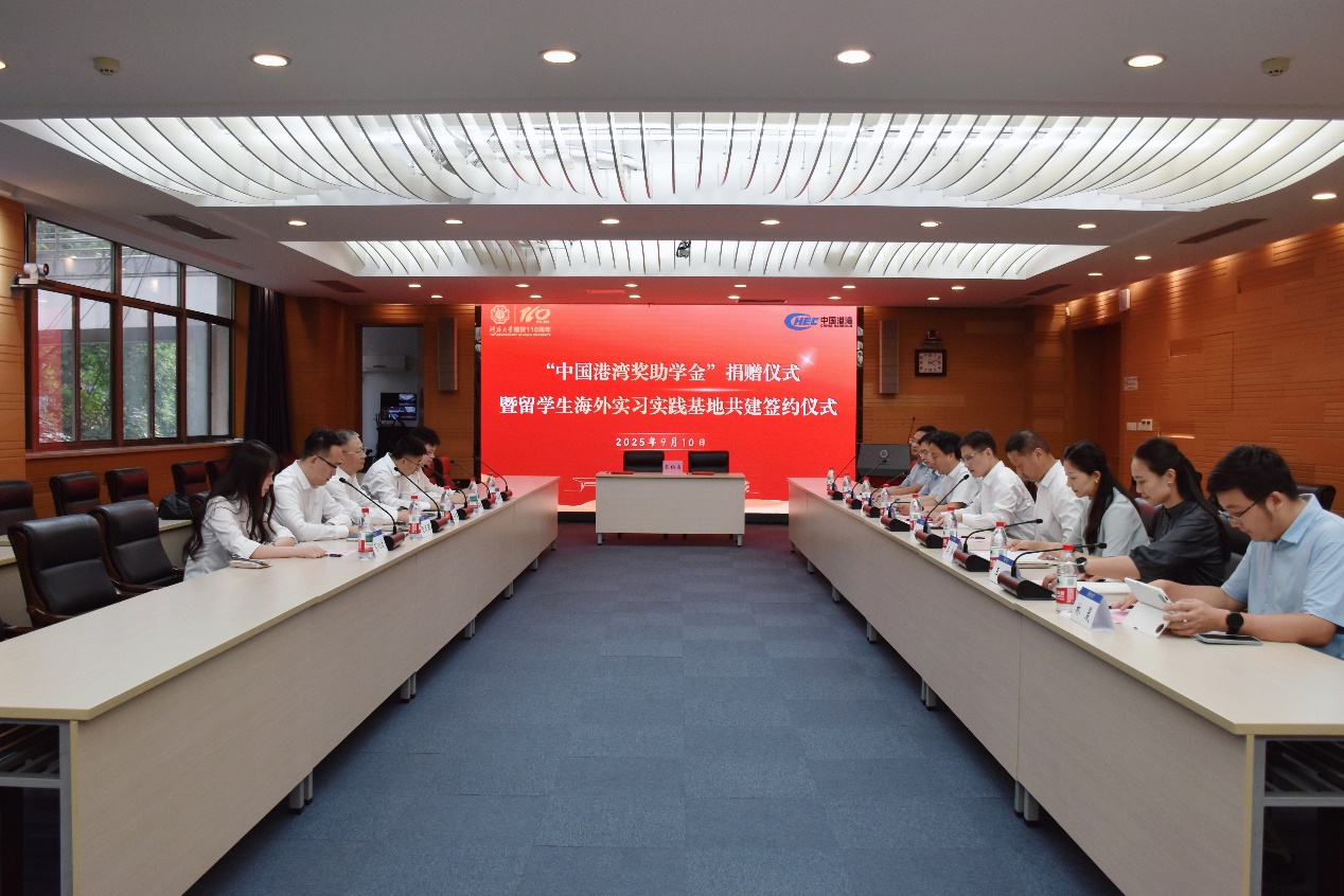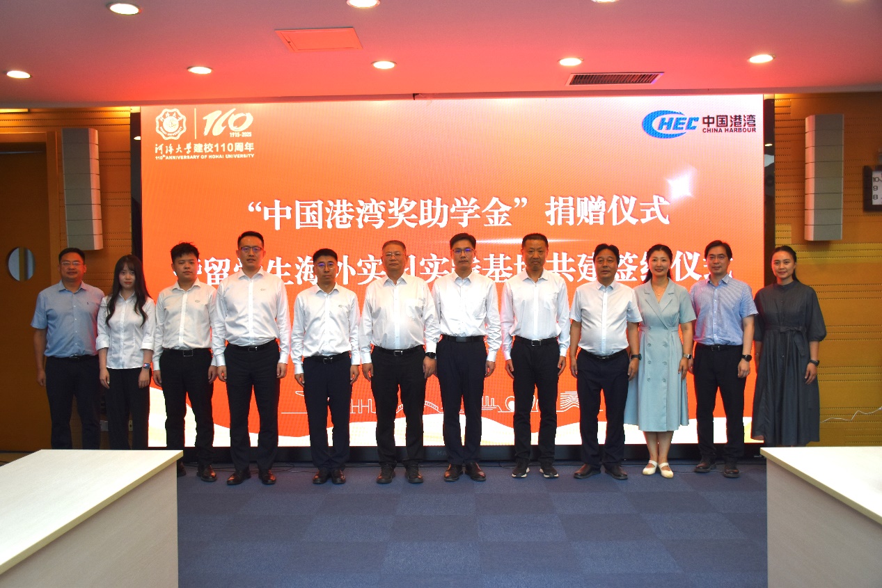 9月10日,“中国港湾奖助学金”捐赠仪式暨留学生海外实习实践基地共建签约仪式在我校举行。高清av 党委常委、副校长沈扬,中国港湾工程有限责任公司党委常委、副总经理、安全总监夏新瑞,国际教育学院院长陈红胜、副院长张弛,国内合作发展处副处长、教育基金会办公室副主任李维,高清av 党委副书记王玲出席签约仪式。仪式由高清av 党委书记张雪刚主持。