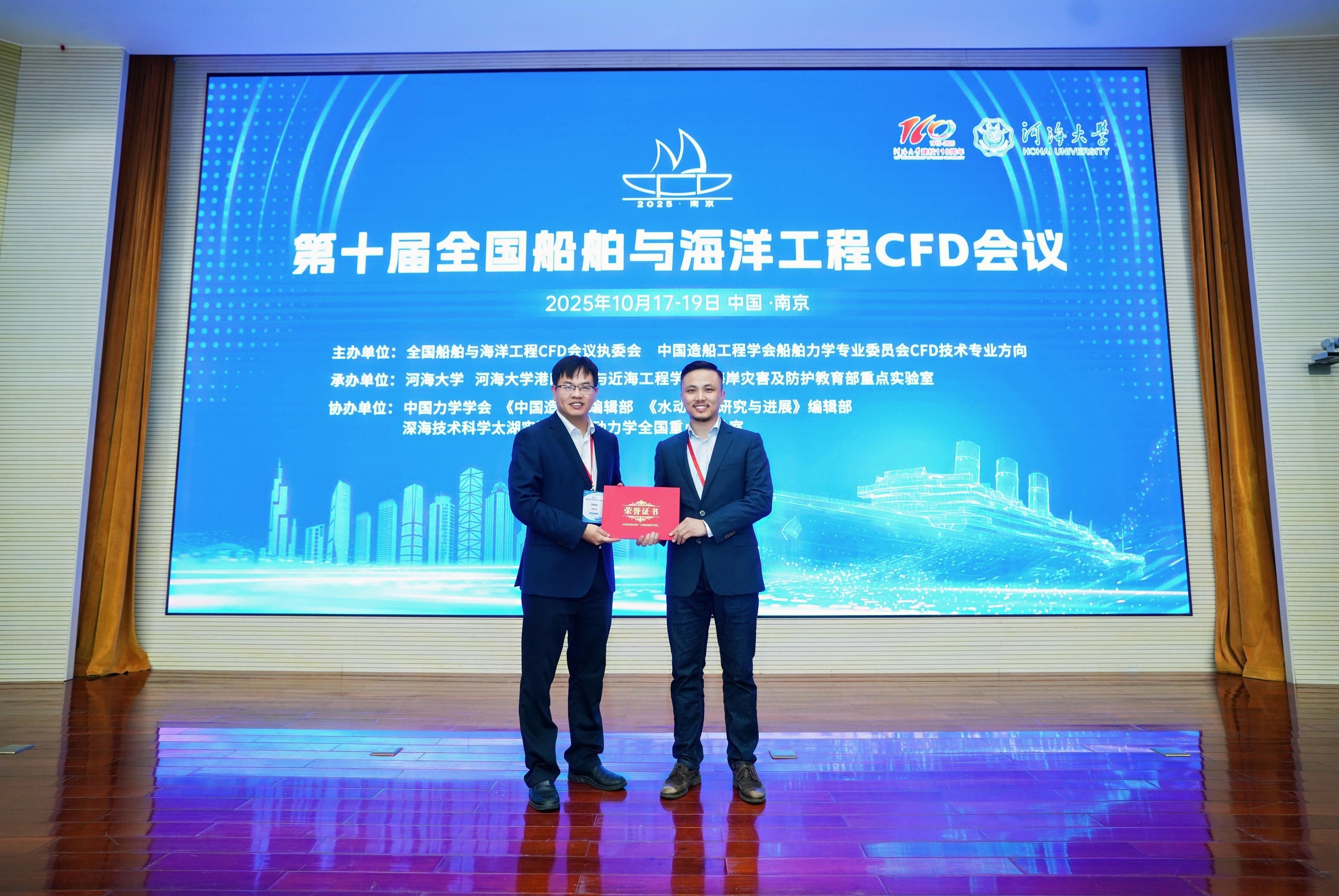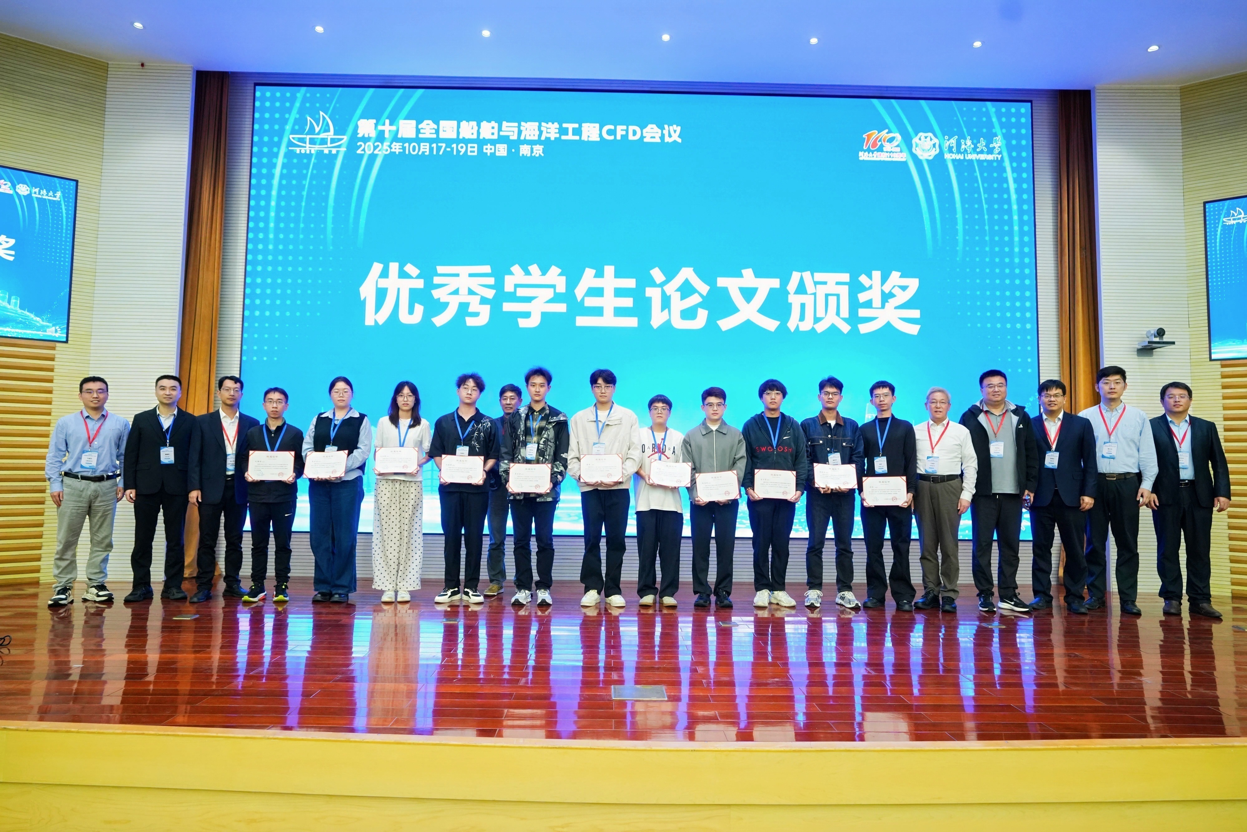 闭幕式环节,全国船舶与海洋工程CFD会议执委会主席万德成教授向获得优秀学生论文的11位研究生颁发了获奖证书。