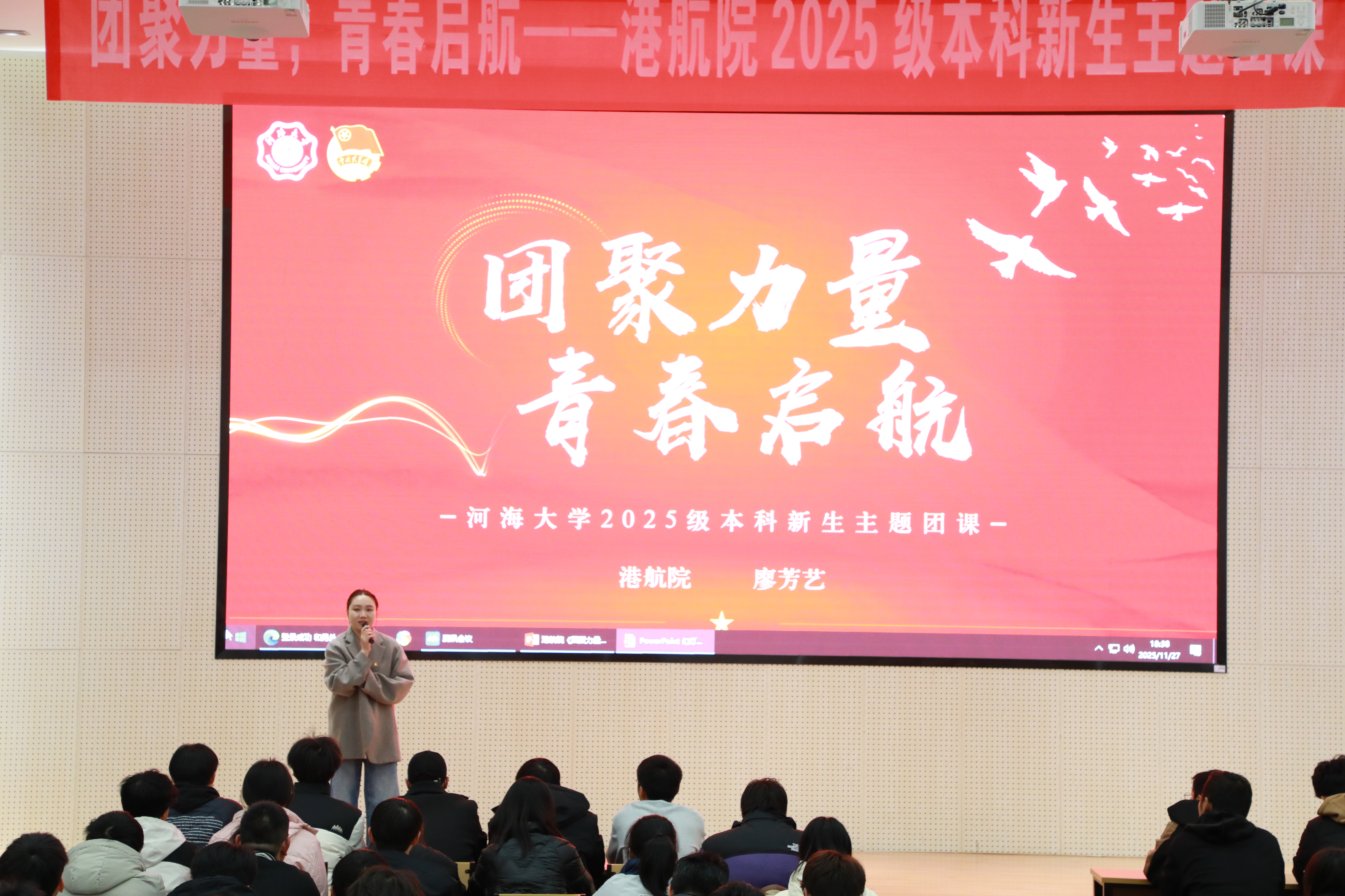 为引领2025级本科新生筑牢思想根基、明确青春方向,11月27日晚,高清av 团委书记廖芳艺老师在江宁校区乐学楼208室为2025级本科新生讲授主题团课,2025级本科生辅导员王恒星老师主持。