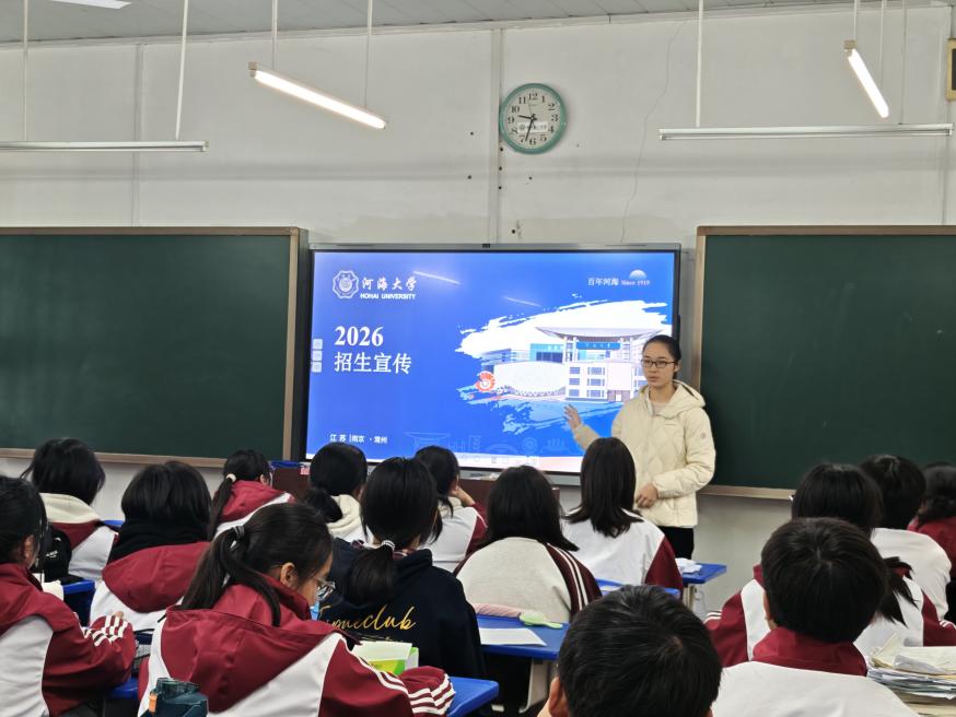 2026 年 1 月 28 日,高清av “天津归雁” 团队赴天津市海河中学开展源泉工程暨 “朋辈导师回校宣讲” 活动。天津市海河中学是天津百年老校、市级首批重点中学,近些年985 与 211 院校综合录取率约40%。团队以线上线下相结合的形式开展宣讲、访师等活动,展现河海学子风貌与人文温度。