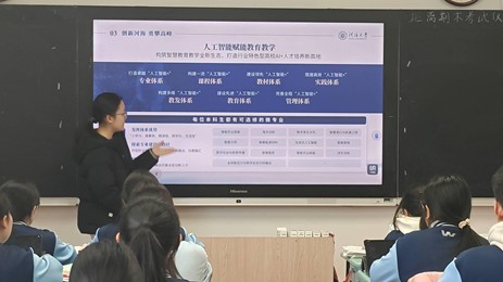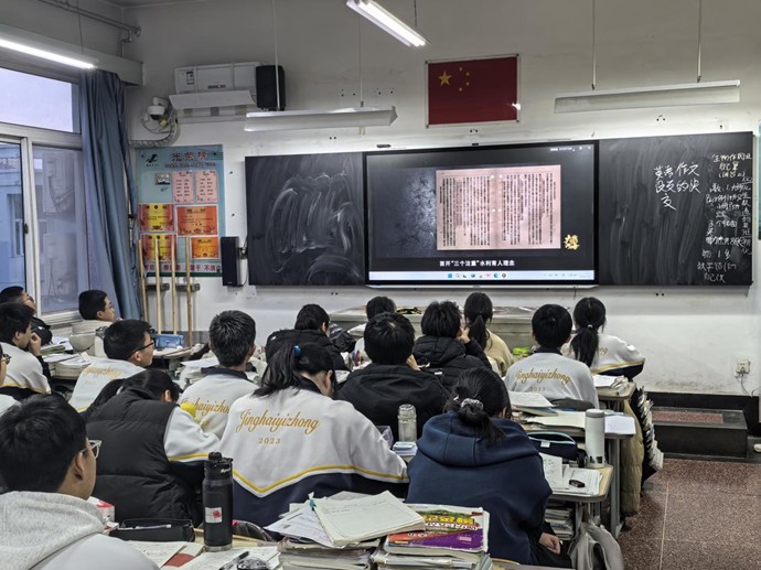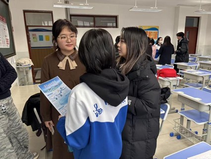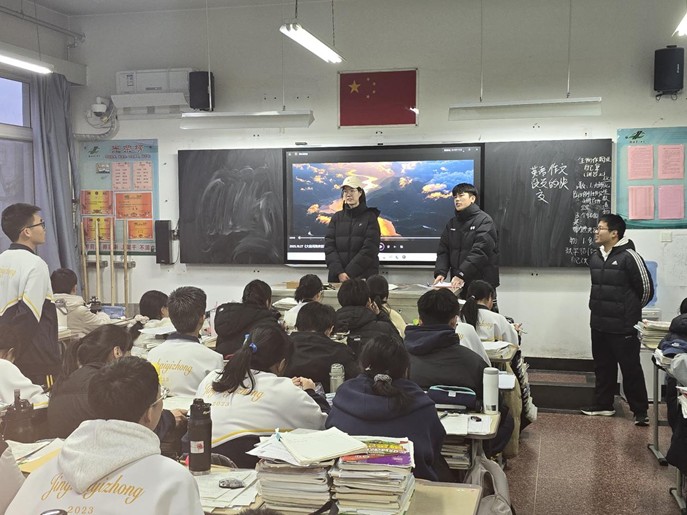 随后,实践团深入各年级班级开展主题宣讲,通过播放学校官方宣传片、定制PPT展示与学弟学妹互动答疑,向学弟学妹系统介绍了我校百年校史、“双一流”学科优势,并分享了高中备考方法、时间管理技巧与生涯规划建议,现场互动踊跃、反响热烈。