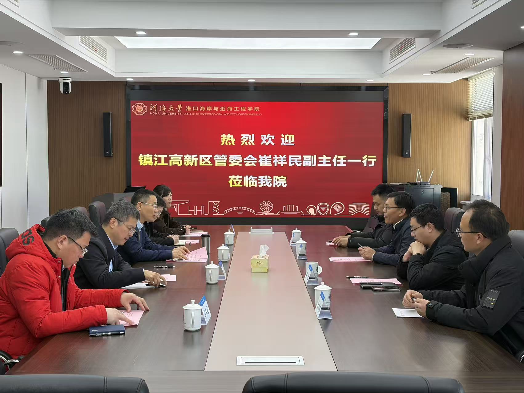 3月13日,镇江高新区管委会副主任、海工装备和高技术船舶产业科技镇长团团长崔祥民,镇江高新区科技发展局副局长雷胜一行来高清av 调研交流。学院院长龚政、副院长陈永平及系所负责人代表参加座谈。
